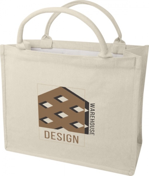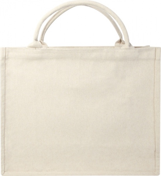Recyklovaná nákupná taška s krátkymi, ale pevnými ušami. Nákupná taška obsahuje recyklované vlákna Cyclo®, kde používajú vopred vytriedený odpad, ktorý určuje farbu priadze.