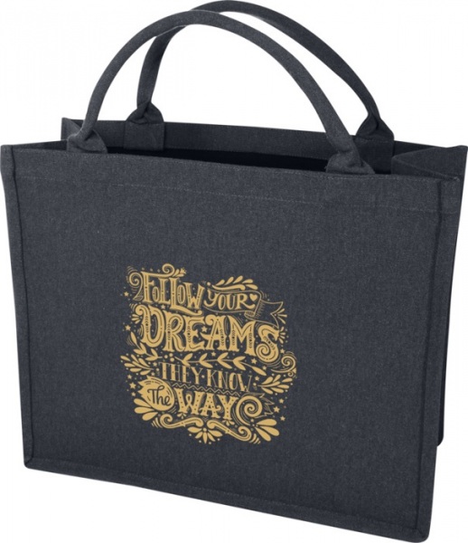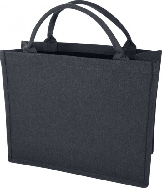 Recyklovaná nákupná taška s krátkymi, ale pevnými ušami. Nákupná taška obsahuje recyklované vlákna Cyclo®, kde používajú vopred vytriedený odpad, ktorý určuje farbu priadze.