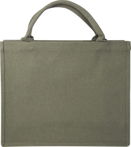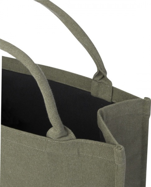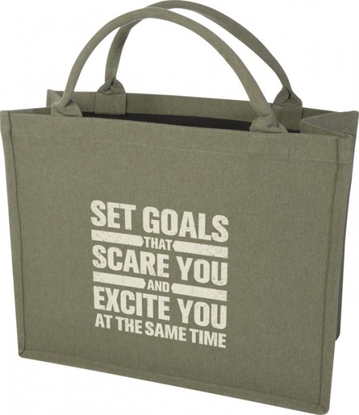 Recyklovaná nákupná taška s krátkymi, ale pevnými ušami. Nákupná taška obsahuje recyklované vlákna Cyclo®, kde používajú vopred vytriedený odpad, ktorý určuje farbu priadze.
