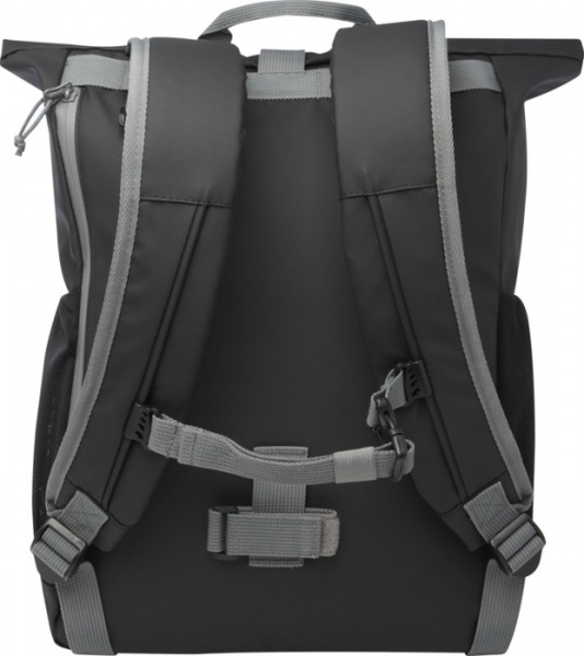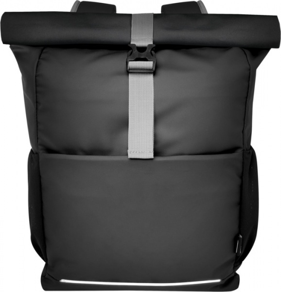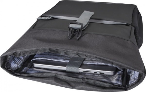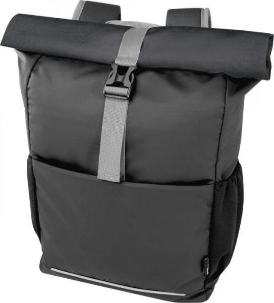 Vodeodolná rolovacia taška na bicykel vyrobená z GRS certifikovaných recyklovaných materiálov. Priehradka na 15" notebook, nastaviteľné zapínanie na suchý zips pre ľahké nasadenie na rôzne bicykle a reflexným lemovaním. Kapacita: 20 litrov, bez PVC.