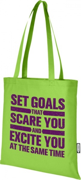 Recyklovaná veľká nákupná taška GRS vyrobená z trvanlivého a proti roztrhnutiu odolného materiálu RPET. Uši sú dlhé 29 cm, a preto sa nákupná taška ľahko prenáša cez rameno. Nosnosť do 5 kg.