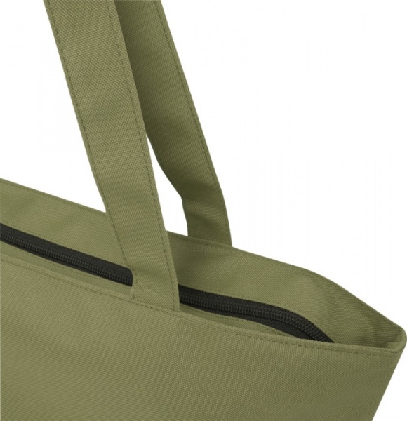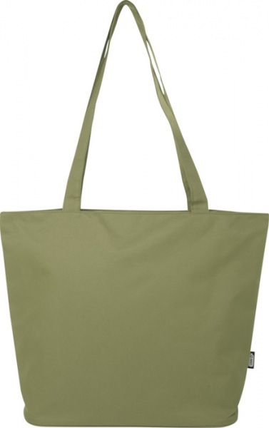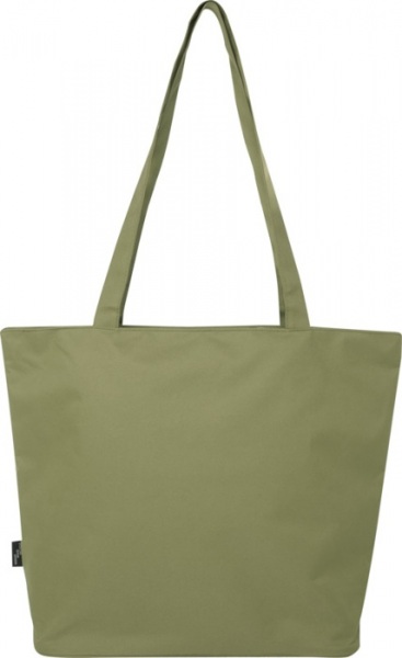 Vyrobená z vodoodpudivého 600D RPET, GRS recyklovaná nákupná taška na zips. Má hlavnú priehradku na zips a vrecko na zips vo vnútri. Uchá sú dlhé 34 cm, a preto sa nákupná taška ľahko prenáša cez rameno. Nosnosť do 10 kg. Neobsahuje PVC.
