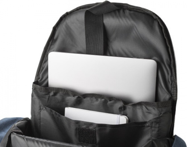 Polyesterový RPET 600D ruksak (15") s funkciou ochrany proti krádeži. Malé vrecko na zadnej a prednej strane, priehradky na fľaše na boku, priehradka na notebook. Detaily na spodnej strane sú vyrobené z recyklovaných automobilových pneumatík.