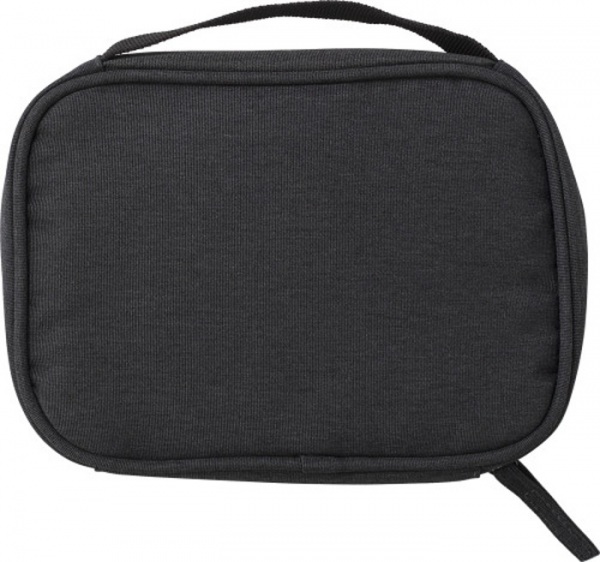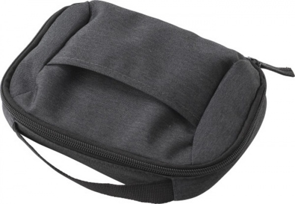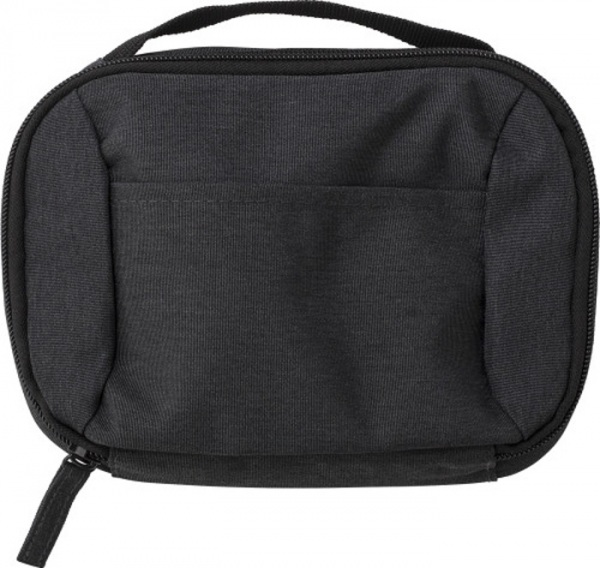 Polyesterové (600D) cestovné puzdro s krátkym pútkom na prenášanie. Jedna priehradka na zips s viacerými vreckami na prenášanie káblov a cestovných dokladov. Jedno malé vrecko na prednej strane.
