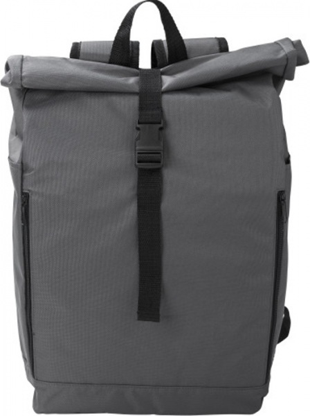 Rolovací ruksak z polyesteru RPET (600D). Dve vrecká na zips na boku. Jedna veľká priehradka. Zapínanie na suchý zips aj pracka.