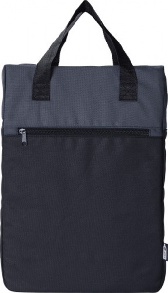 Ruksak z RPET polyesteru (600D). Jedna vnútorná priehradka. Jedno predné vrecko na zips.