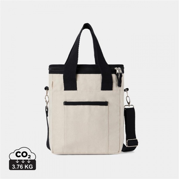 Prispôsobiteľný ramenný popruh a pevné madlá. Absencia bielenia a farbenia eliminuje využitie chemikálií pri výrobe. Canvas je vyrobený zo 70% recyklovanej bavlny a 30% recyklovaného polyesteru. Obsahuje skenovateľnú zložku AWARE™.