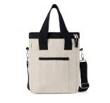 Prispôsobiteľný ramenný popruh a pevné madlá. Absencia bielenia a farbenia eliminuje využitie chemikálií pri výrobe. Canvas je vyrobený zo 70% recyklovanej bavlny a 30% recyklovaného polyesteru. Obsahuje skenovateľnú zložku AWARE™.