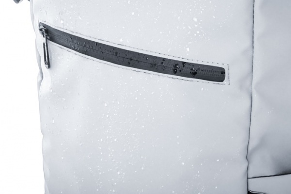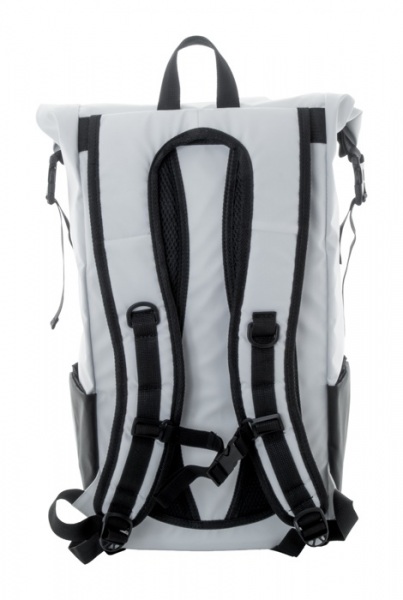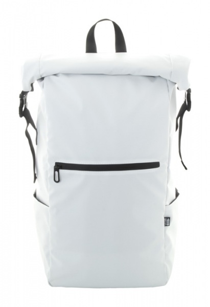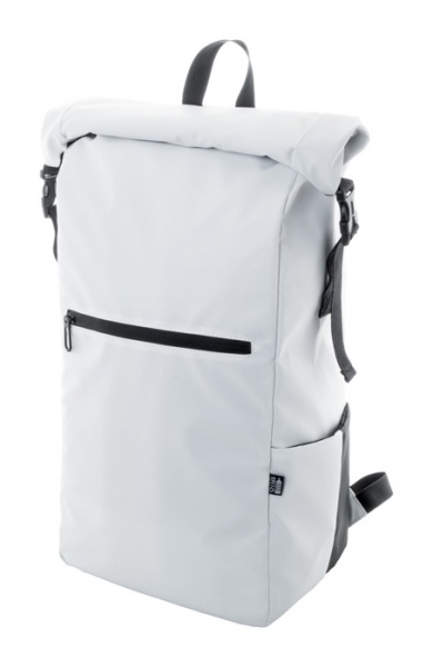 Vodotesný rolovací batoh z RPET so zapínaním na pracku a suchý zips, polstrovaná priehradka na notebook (16") a tablet (10"), predné vrecko na zips, bočné vrecká, polstrovaný chrbát a ramenné popruhy. Polyester 600D RPET potiahnutý PU, s výrazným štítkom