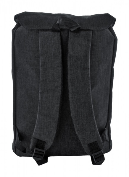 RPET batoh so zapínaním na pracku a šnúrku, predné vrecko na suchý zips, priehradka na notebook (15"), polstrovaný chrbát a ramenné popruhy. 300D RPET polyester s výrazným štítkom RPET.