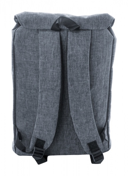 RPET batoh so zapínaním na pracku a šnúrku, predné vrecko na suchý zips, priehradka na notebook (15"), polstrovaný chrbát a ramenné popruhy. 300D RPET polyester s výrazným štítkom RPET.