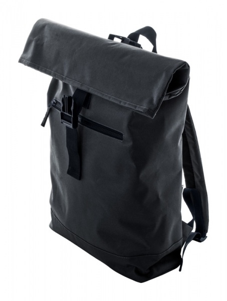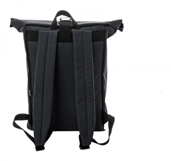Rolovací batoh RPET so zapínaním na pracku, predné vrecko na zips, polstrovaná priehradka na notebook (15"), polstrovaný chrbát a ramenné popruhy. Polyester 600D RPET s výrazným štítkom RPET.