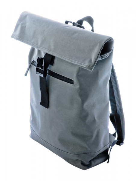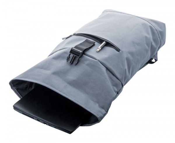 Rolovací batoh RPET so zapínaním na pracku, predné vrecko na zips, polstrovaná priehradka na notebook (15"), polstrovaný chrbát a ramenné popruhy. Polyester 600D RPET s výrazným štítkom RPET.