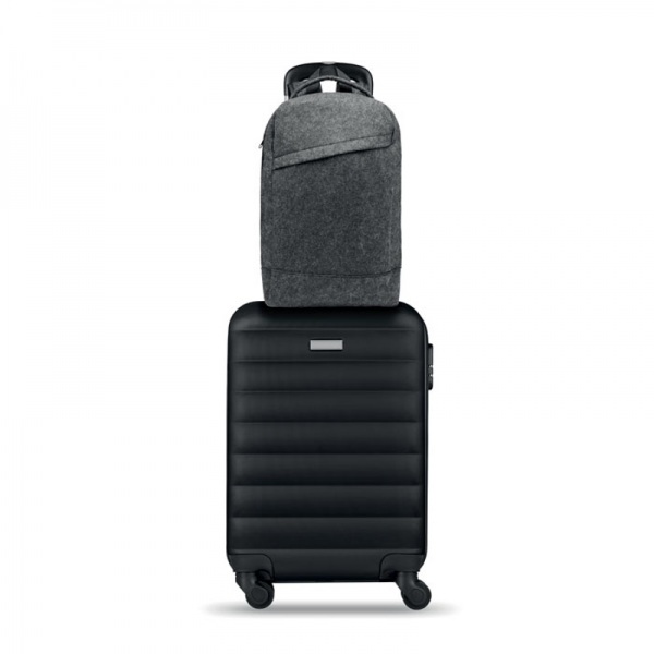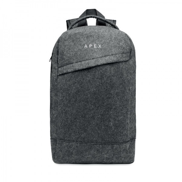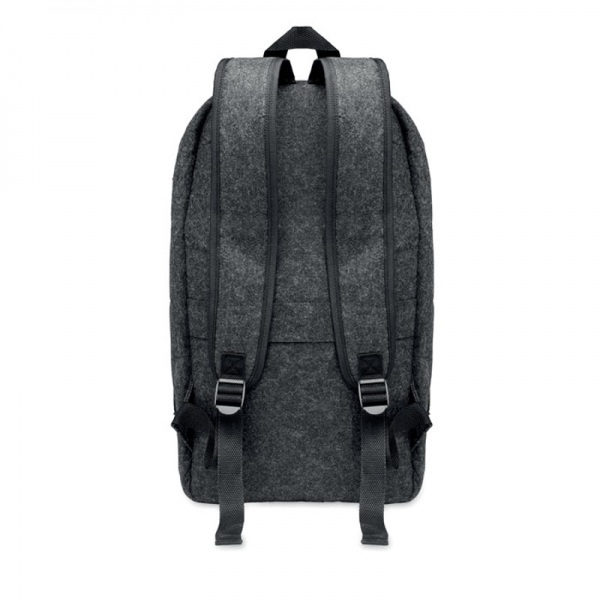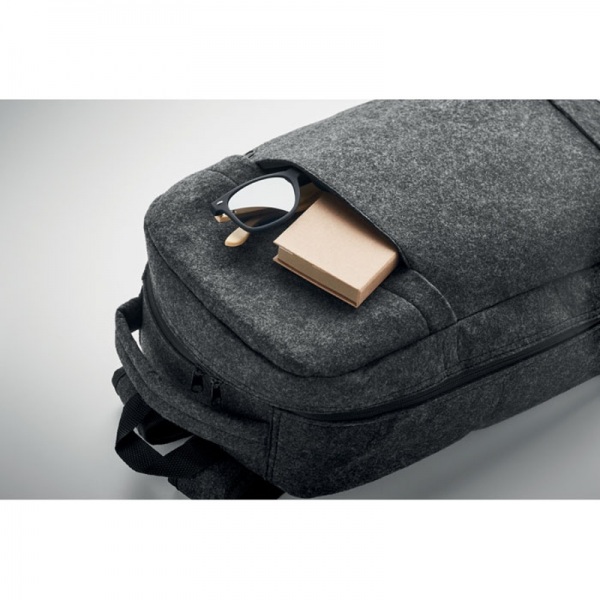 Batoh z plsti RPET na 13 palcový notebook s polstrovaným chrbtom a popruhmi. Vnútorná priehradka na zips. Držiak na kufrík na zadnej strane.