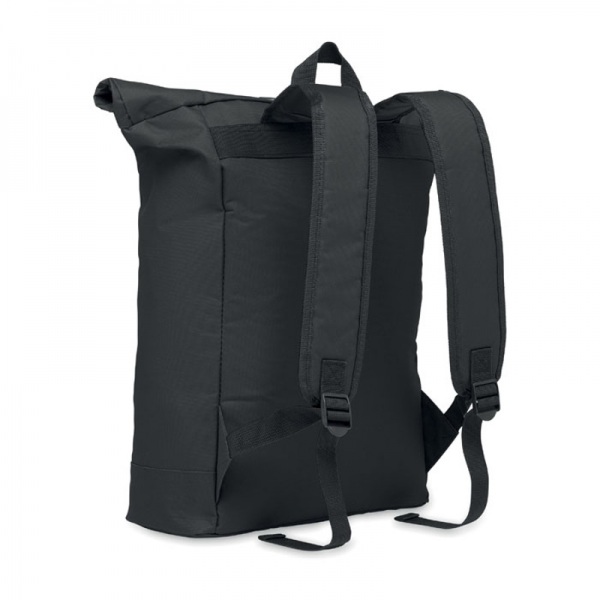 15-palcový rolovací batoh na notebook zo 600D polyesteru s vystuženým chrbtom a základňou. Predné vrecko na zips. 210D podšívka.