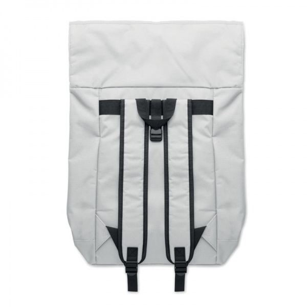 15-palcový rolovací batoh na notebook zo 600D polyesteru s vystuženým chrbtom a základňou. Predné vrecko na zips. 210D podšívka.