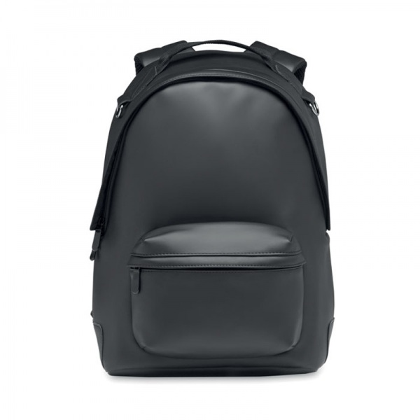 Batoh na 15' notebook z mäkkého PU s polstrovaným chrbtom a vystuženým dnom. Predné vrecko na zips. Podšívka je z materiálu 210D RPET.
