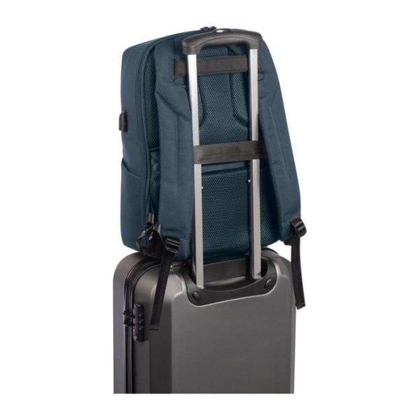 Vysoko kvalitný, vodeodolný ruksak zo 65% nylonu a 35% polyuretánu, so zabudovaným USB portom a zosilnenými priedušnými ramennými popruhmi. Batoh ponúka dostatok úložného priestoru, je vhodný pre notebooky až do 15,6 palca a tiež pripravený na kufor.