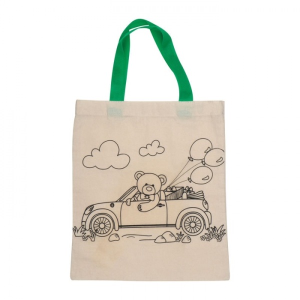 Bavlnená taška s detským motívom a farebnými ceruzkami.