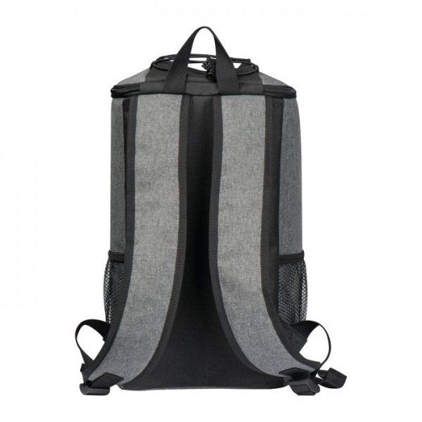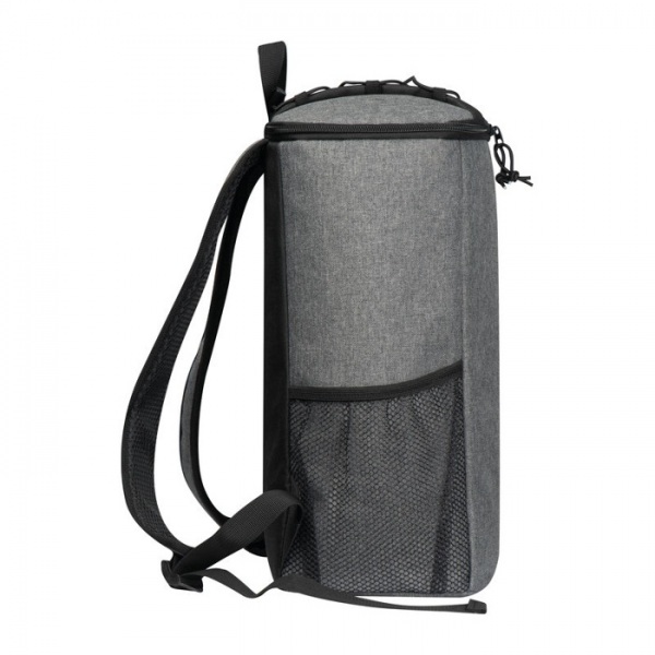 Polyesterový ruksak a chladiaca taška v jednom s polstrovanými ramennými popruhmi, sieťovanými bočnými priehradkami a malým vreckom na zips vo vnútri.