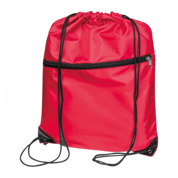 Nepremokavé vrecúško z recyklovateľných plastov RPET s uzatvárateľnou prednou priehradkou, popruhmi a sťahovacou šnúrkou.