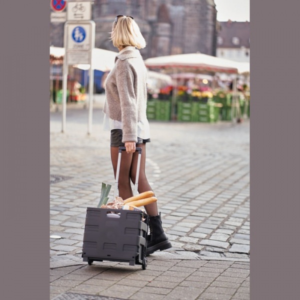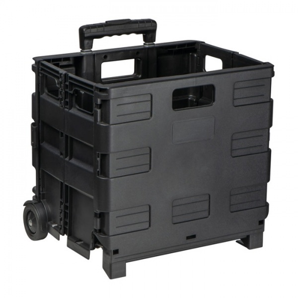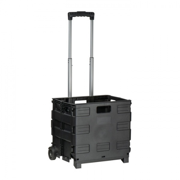 Skladací plastový nákupný vozík s výsuvnou rukoväťou a objemom 32 litrov. Umožňuje jednoduché prenášanie nákupov.