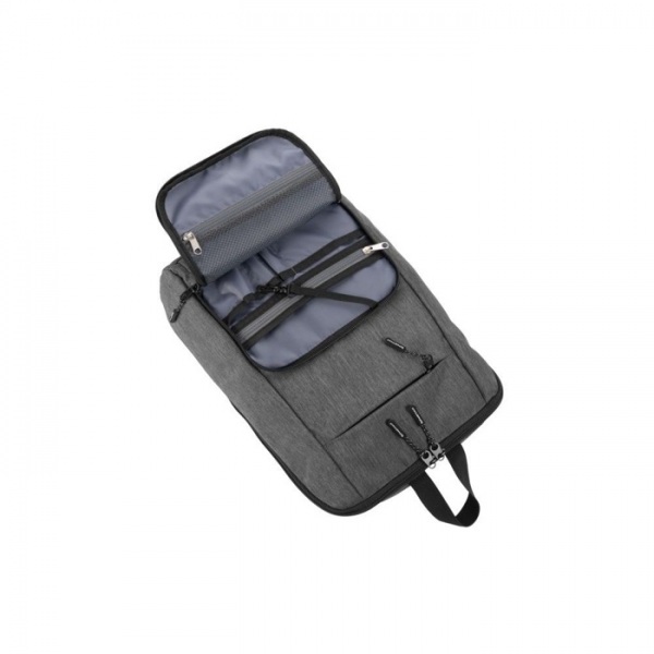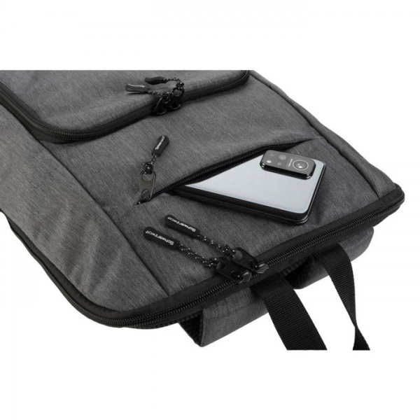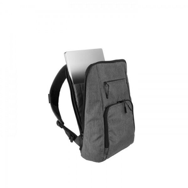 Ľahký a skladný batoh obsahuje jedno hlavné vrecko na zips s polstrovanou priehradkou na notebook. V prednej časti je jedno menšie núdzové vrecko na zips a väčšia priehradka na zips s organizérom. Polstrovaný chrbát a ramenné popruhy.