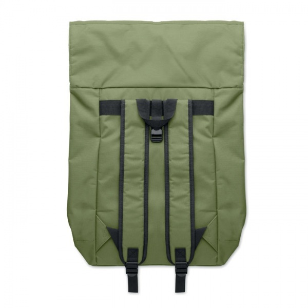 15-palcový rolovací batoh na notebook zo 600D polyesteru s vystuženým chrbtom a základňou. Predné vrecko na zips. 210D podšívka.