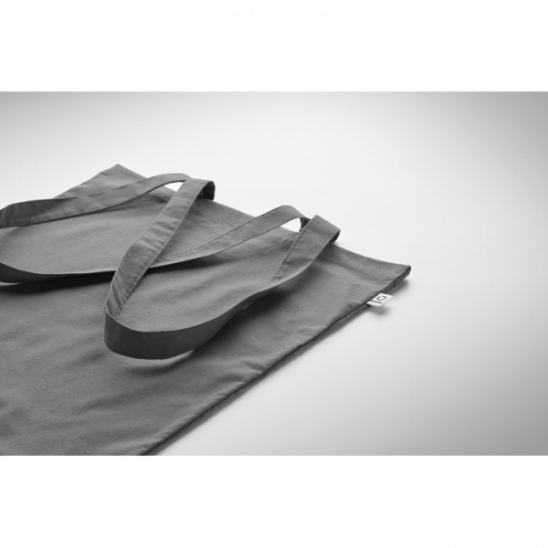 Nákupná taška z recyklovanej predspotrebiteľskej bavlny (70 % recyklovaná bavlna a 30 % RPET) s dlhými rúčkami. Gramáž 140 g/m2.