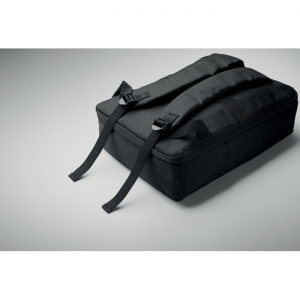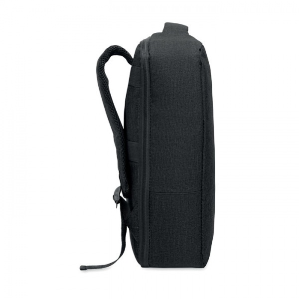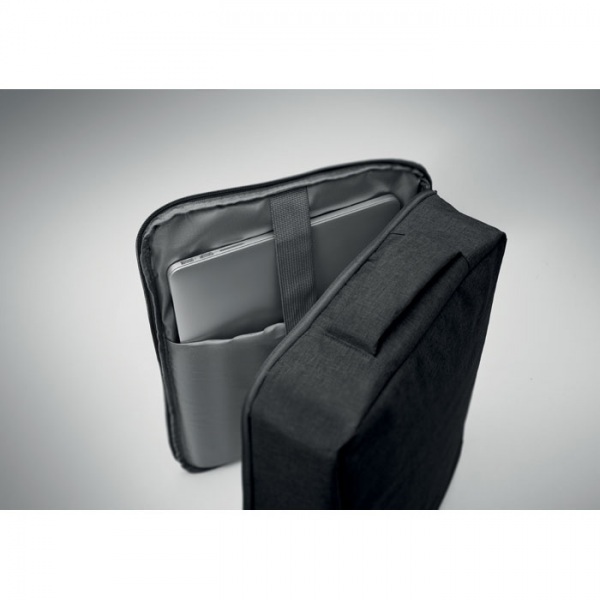 Tenký 15-palcový batoh na notebook z 300D RPET s bezpečným otváraním 180 stupňov s 210D RPET podšívkou. Obsahuje priehradku na notebook, 2 vnútorné vrecká, 2 vrecká na perá a 2 polstrované rúčky na prenášanie. Mäkký polstrovaný chrbát a ramenné popruhy.