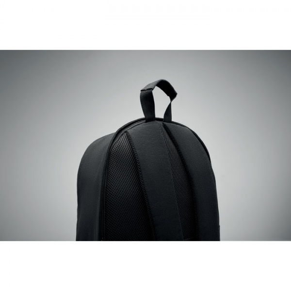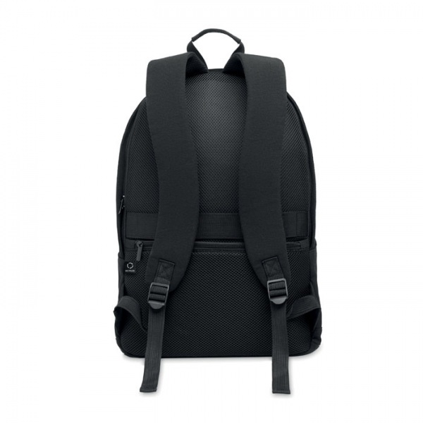 15-palcový batoh na notebook z recyklovanej predspotrebiteľskej bavlny a recyklovaného polyesteru. Má predné vrecko na zips, vrecko na zips na zadnej strane. Mäkký polstrovaný chrbát a ramenné popruhy. Držiak na kufor na zadnej strane.