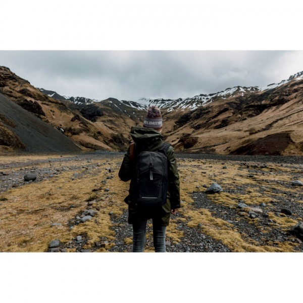 Turistický batoh 18L z vodoodpudivého 420D nylonu s reflexným pruhom. Priehradka na 15 palcový notebook, predná priehradka na zips, predné posuvné vrecko na pracku, 2 bočné posuvné vrecká. Polstrovaný chrbát a ramenné popruhy. Vetraná zadná strana.