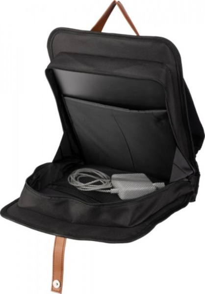 RPET (600D) polyesterový vodoodpudivý batoh z Oxford tkaniny s úplne plochou prednou stranou. Batoh má vrecko na notebook (15 palcov) a vnútorné vrecko zo sieťoviny s nastaviteľnými popruhmi. Obsahuje PU slučku a zapínanie na PU magnet.