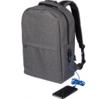 Batoh s otvorom na USB port (vrátane káblu) s veľkou priehradkou na zips na vrchnej strane a vreckom na zips na prednej strane. Priehradka pre 10-palcové a 15-palcové zariadenia. S nastaviteľnými rukoväťami.