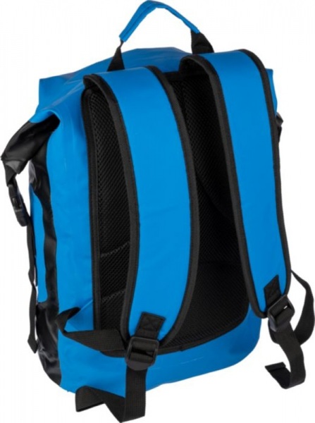 Plachtový (250D) nepremokavý rolovací batoh 25l s veľkou priehradkou. Má nastaviteľné vystužené popruhy a vystuženú zadnú časť spolu s rúčkou na vrchu a zapínaním na pracku.