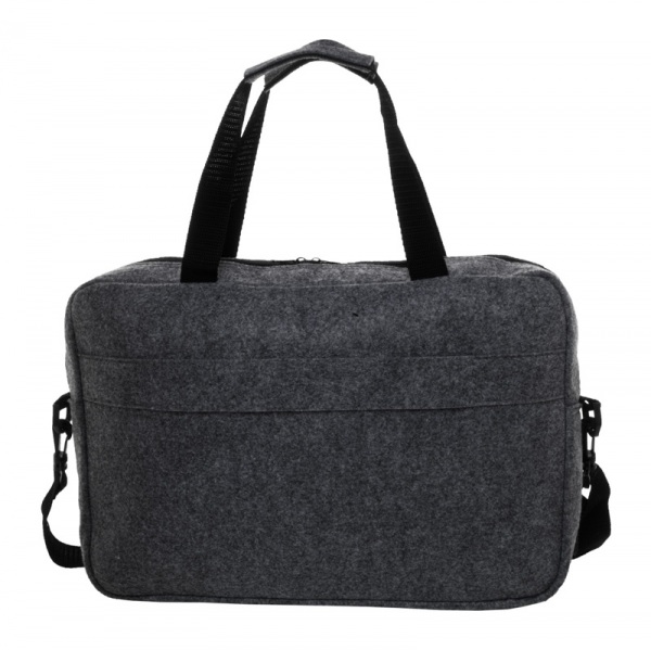 Taška na dokumenty z RPET plsti s hlavnou priehradkou na zips a predným vreckom. S priehradkou na notebook (15"), popruhom na vozík a nastaviteľným ramenným popruhom. S výrazným štítkom RPET.