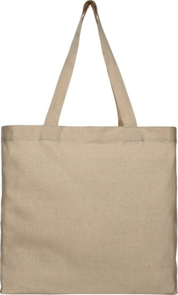 Nákupná taška zo zmesi recyklovanej bavlny a polyesteru 210 g/m2. Recyklovaná bavlna pochádza z výrobného odpadu textilných tovární, vznikajúceho počas rezania. Taška so skladacím dnom a veľkou hlavnou priehradkou. Nosnosť do 10 kg.