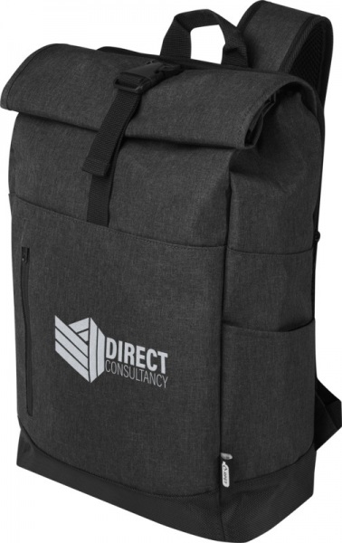 Batoh na 15,6" notebook s polstrovanou priehradkou na notebook, polstrovanými nastaviteľnými ramennými popruhmi, hlavným vreckom na zips s rolovacím zatváraním v hornej časti, 2 uchami a predným vreckom na zips.