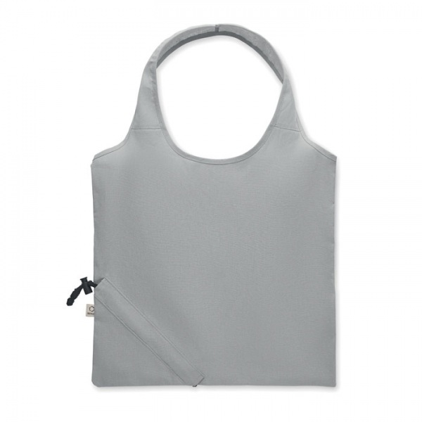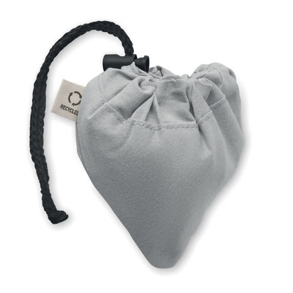 Skladacia taška z recyklovanej bavlny (zmes bavlny a polyesteru). Po potlači sa môže zraziť.