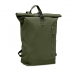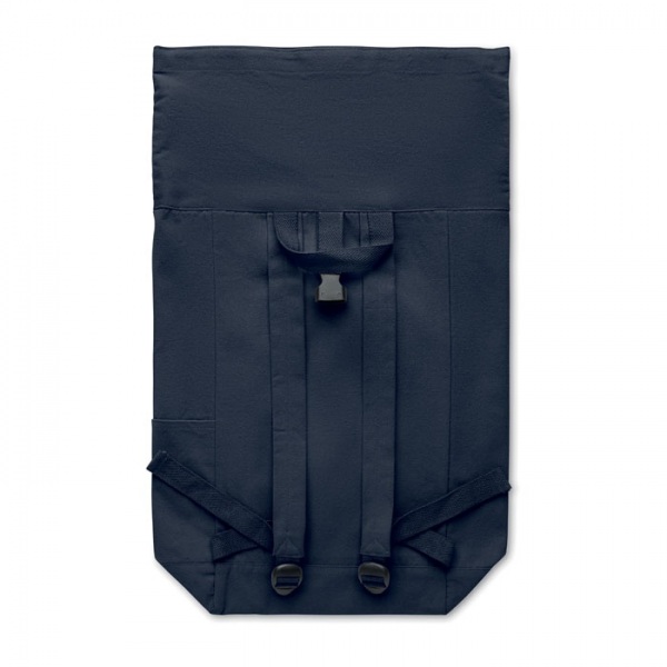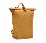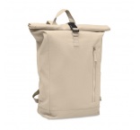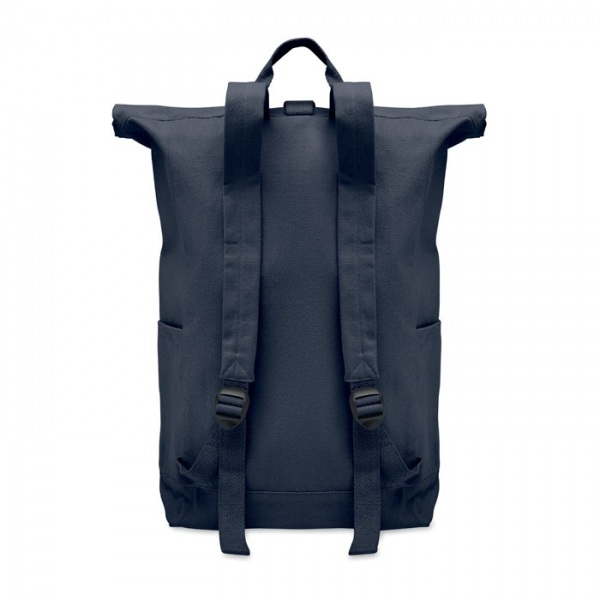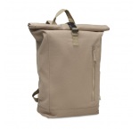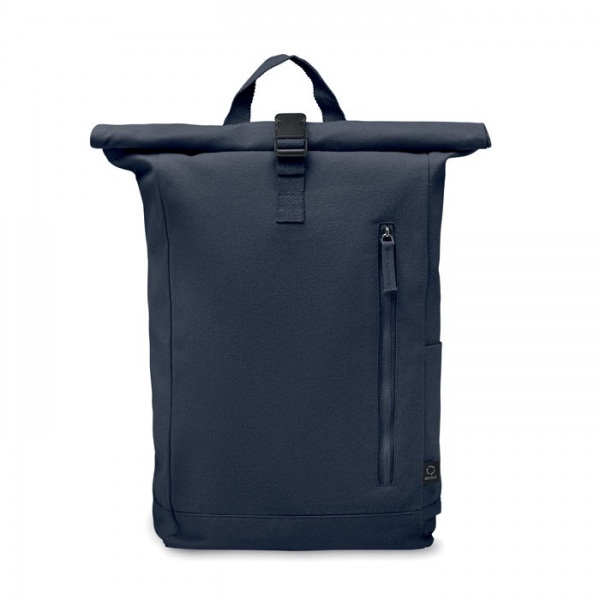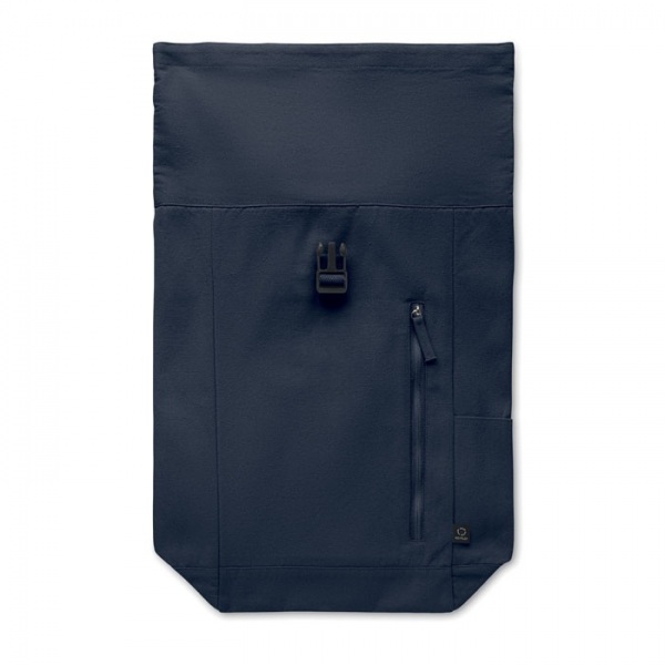 Batoh s rolovacím vrchom a zapínaním na suchý zips z 390 g/m2 recyklovanej bavlny (80 %) a recyklovaného polyesteru (20 %). Predné vrecko na zips.