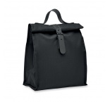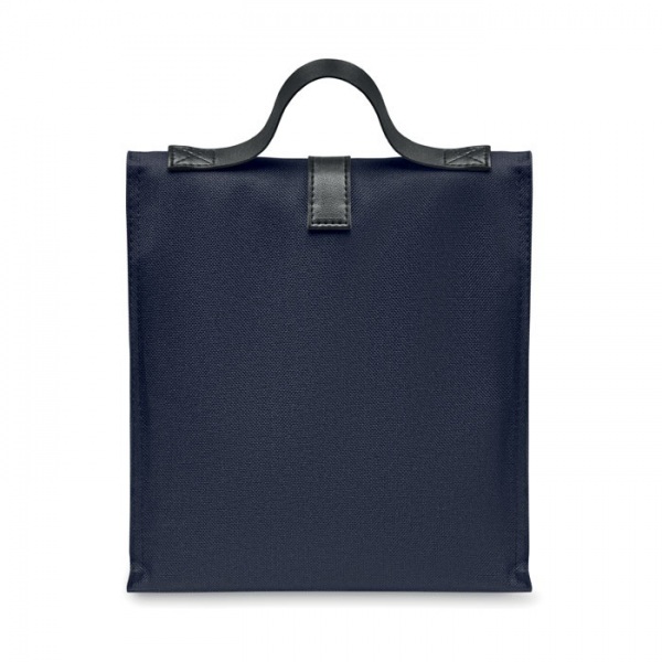 600D RPET polyesterová izolovaná chladiaca taška na obed s PU rukoväťou a uzáverom. Izolácia: 3mm PE pena s PEVA.