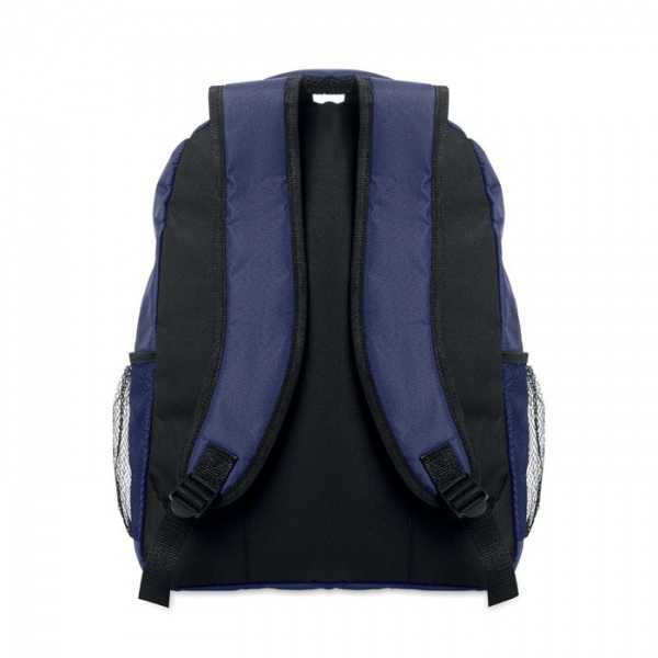 Batoh na 15-palcový notebook z 600D RPET polyesteru s vystuženou priehradkou na laptop vo vnútri, sieťovanými vreckami na oboch stranách a predným vreckom na zips.