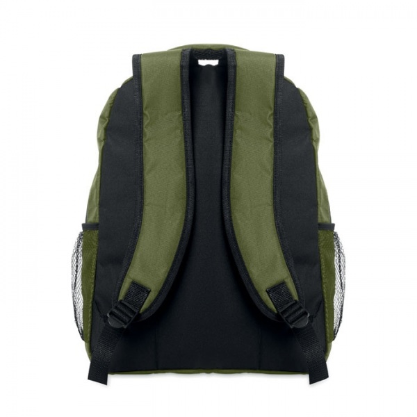 Batoh na 15-palcový notebook z 600D RPET polyesteru s vystuženou priehradkou na laptop vo vnútri, sieťovanými vreckami na oboch stranách a predným vreckom na zips.