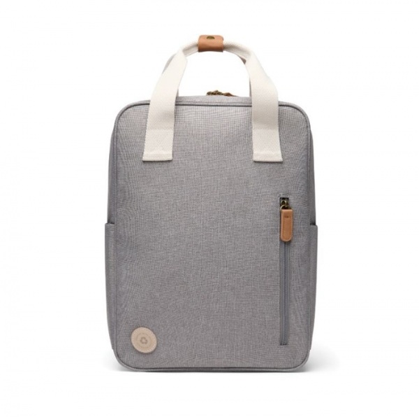 Batoh ponúka praktické predné vrecko na zips a dve otvorené bočné vrecká. Vo vnútri priestranného hlavného priestoru sa nachádza menšie vrecko, ktoré je navrhnuté pre jednoduchú organizáciu. Kovové detaily v starožitnej mosadzi. Podiel recyklátu: 10 %