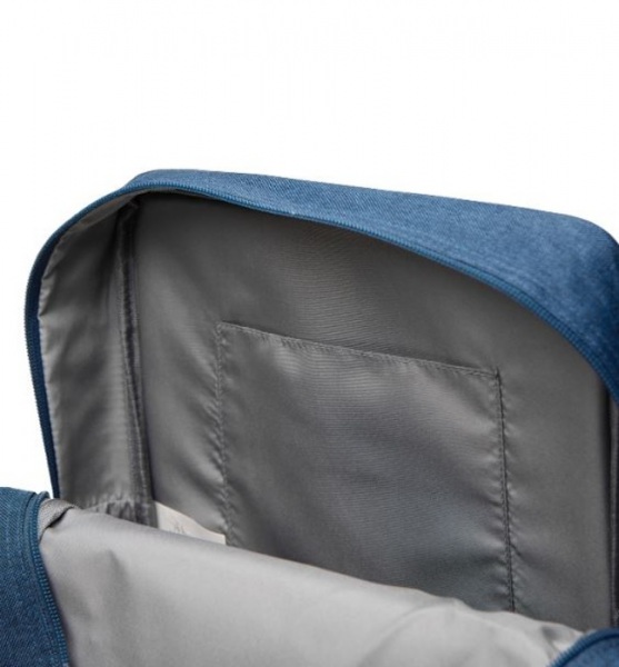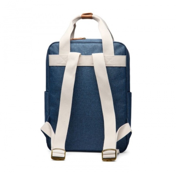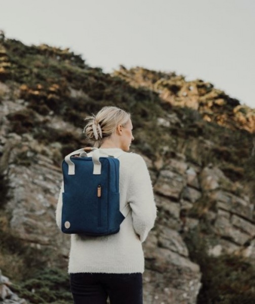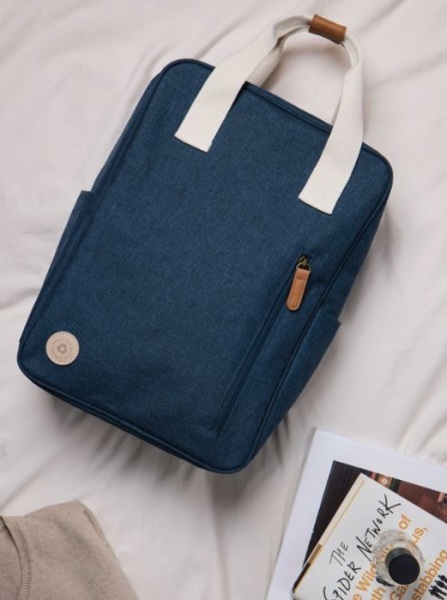 Batoh ponúka praktické predné vrecko na zips a dve otvorené bočné vrecká. Vo vnútri priestranného hlavného priestoru sa nachádza menšie vrecko, ktoré je navrhnuté pre jednoduchú organizáciu. Kovové detaily v starožitnej mosadzi. Podiel recyklátu: 10 %