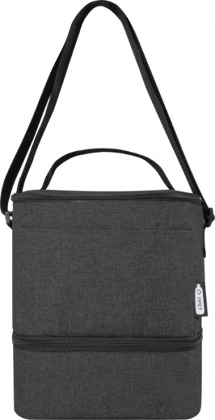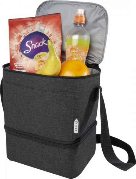 Chladiaca taška na obed z recyklátu poskytuje dostatok úložného priestoru pre všetky vaše dobroty na obed. Má hornú a spodnú izolovanú priehradku na zips.