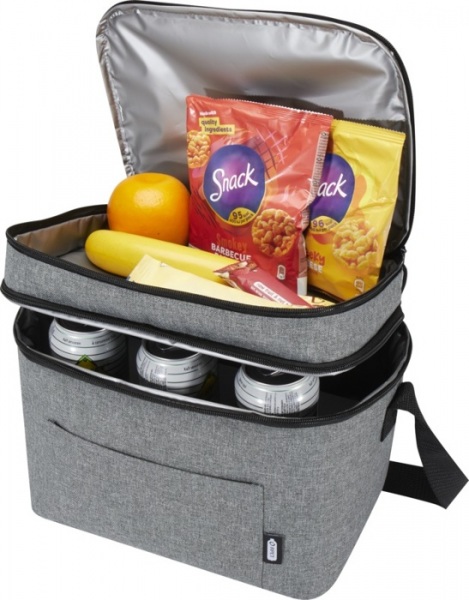 Chladiaca taška Tundra má hornú priehradku na zips, priestrannú hlavnú priehradku a nastaviteľné ramenné popruhy. Vyrobené z PEVA podšívky a recyklovaného polyesteru s certifikáciou GRS. Objemová kapacita: 13 litrov.