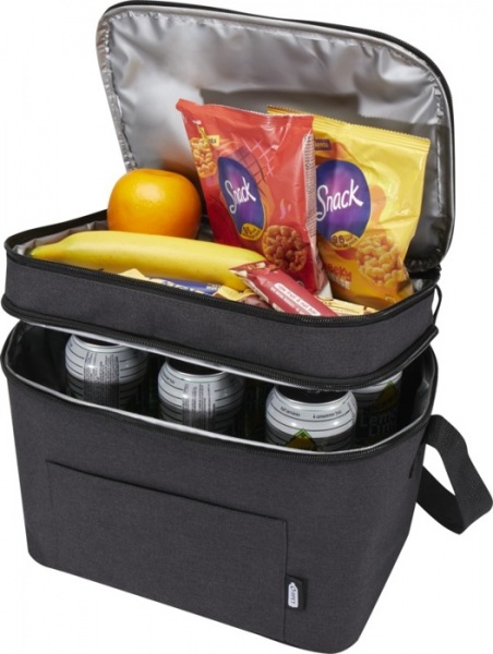 Chladiaca taška Tundra má hornú priehradku na zips, priestrannú hlavnú priehradku a nastaviteľné ramenné popruhy. Vyrobené z PEVA podšívky a recyklovaného polyesteru s certifikáciou GRS. Objemová kapacita: 13 litrov.
