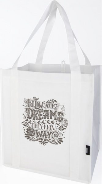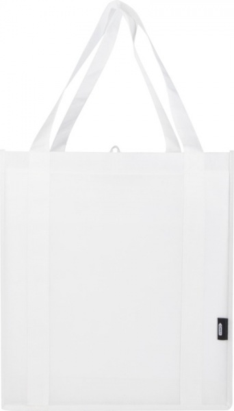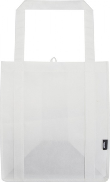 Recyklovaná nákupná taška Liberty s certifikáciou GRS vyrobená z odolného netkaného RPET má podpornú spodnú dosku, vďaka ktorej je univerzálna a pevná. Nákupná taška má veľkú hlavnú priehradku a uši s dĺžkou 25 cm. Objem: 29 litrov. Nosnosť do 12 kg.