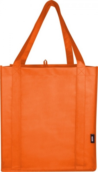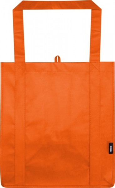 Recyklovaná nákupná taška Liberty s certifikáciou GRS vyrobená z odolného netkaného RPET má podpornú spodnú dosku, vďaka ktorej je univerzálna a pevná. Nákupná taška má veľkú hlavnú priehradku a uši s dĺžkou 25 cm. Objem: 29 litrov. Nosnosť do 12 kg.